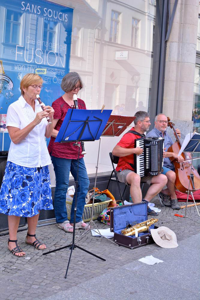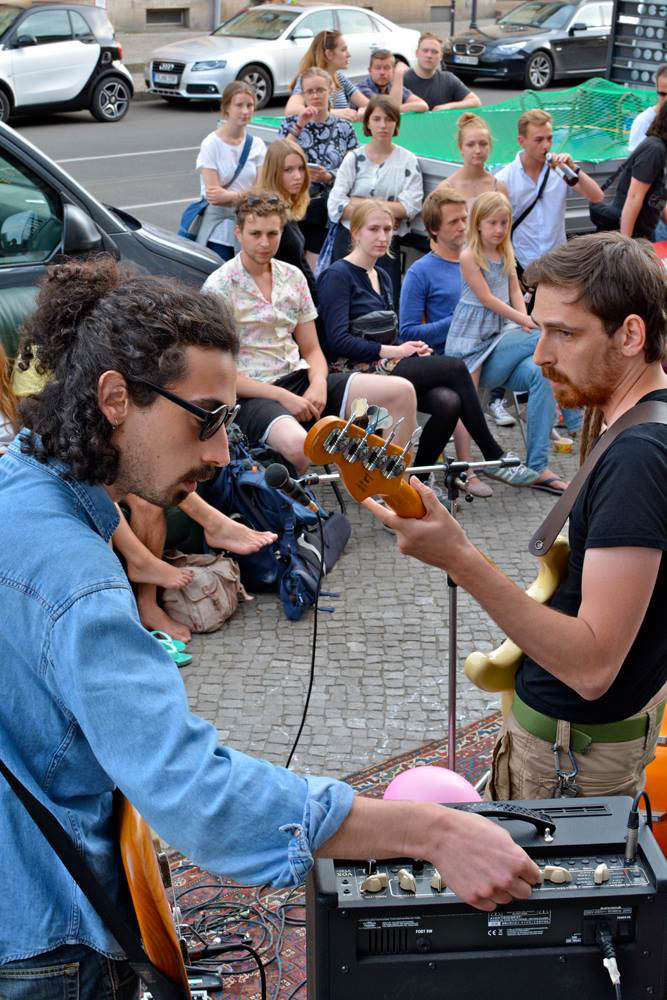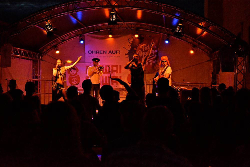 Trotzdem hat unser musikalisches Band vom Park.Sommer in Drewitz bis zum Casino der FH Potsdam, vom Basskontakt im NIL bis zum Wartmanns in Klein Glienicke gereicht und ganz Potsdam miteinander verbunden. Unsere Musiker haben eine wahnsinnig tolle Show abgeliefert und sicher viele neue Fans gewonnen. Egal ob in lockerer Singer-Songwriter-Atmosphäre vor dem Staudenhof, dicht gedrängt bei Im Modus im Rechenzentrum, galaktisch im Urania-Planetarium oder in schönster Fête-Attitüde mitten auf der Brandenburger Straße. Wir freuen uns sehr, dass auch die ViP wieder mit ihrer mobilen Tram-Bühne dabei war und Sexta Feira sich traditionell über den Boulevard getrommelt und dabei –wie der Rattenfänger von Hameln – ein begeistertes Publikum hinter sich hergezogen hat.